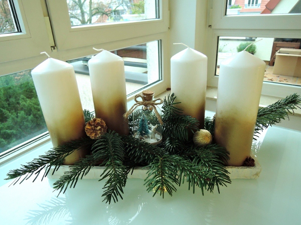 Adventkranz мы решили сделать в бело-зелено-золотых тонах в этом году.