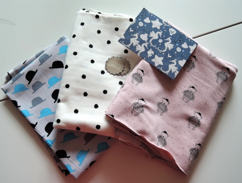 2 трикотажа, с ми-ми-мишками и в крапинку, запланировано на двухстороннюю пеленку/ на выписку, если будет-таки девочка)