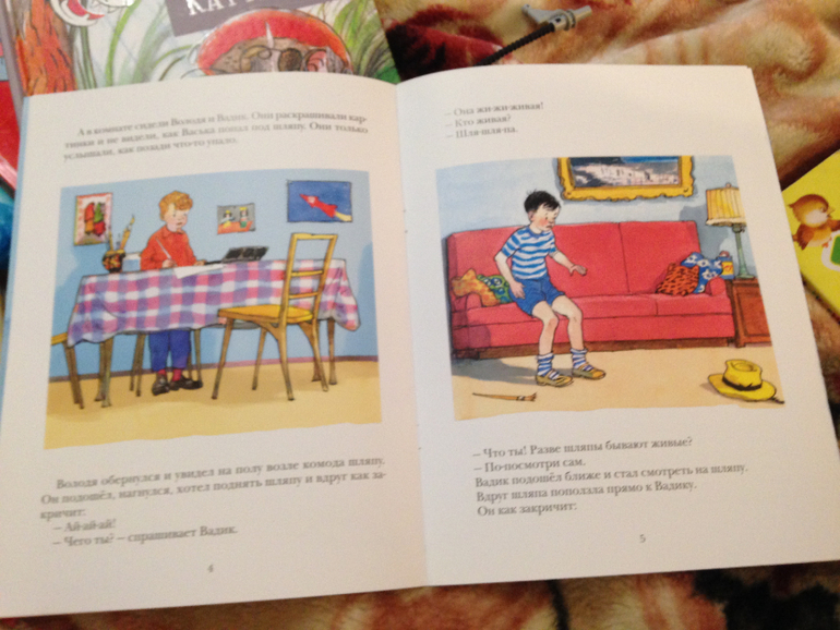 Живая шляпа. Вчера только получили ее, а уже раз 5 точно прочитали. Картинки всё те же, из детства) У меня ностальгия, Тёмке нравится. Все счастливы, все довольны)))