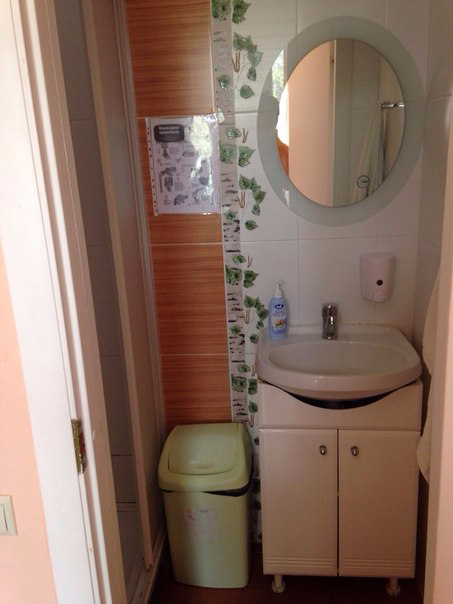 В палате есть пеленальный столик, телевизор, чайник, душ. Туалет напротив, там 3 унитаза на 4 девочки.