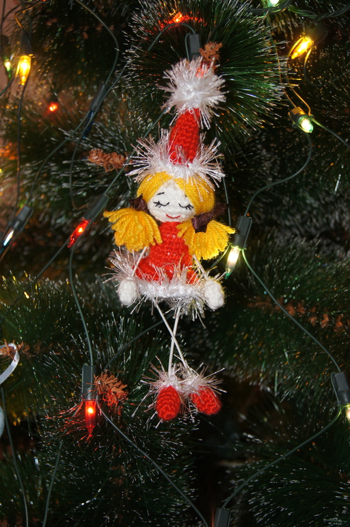 И на ёлочке.Ёлку я собрала Максу,так как он просил,ещё неделю назад и отдала ему на растерзание.Он развешивает на ней игрушки мои.Ёлочные игрушки пока не доставала.Даже наверху он сам всё вешал,ставил стул и дотягивался.