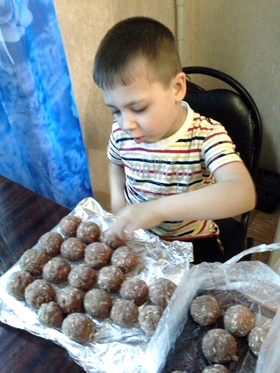 Она у нас уже дней 18-20 и чего я только не делала.И овощи себе замораживаю,и разложила всё удобно,мясо с мясом,курица с курицей,овощи вообще отдельно,красота )) Замораживаем котлетки,фрикадельки.Специально делаю больше фарша и часть убираю в морозилку,но делаю полуфабрикаты,а не сплошным мессивом.Здесь на фото Макс мне помогает фрикадельки с рисом, уже замёрзшие,убирать в пакет и в морозилку.Замораживаю на доске разделочной и сверху фольга.Можно сверху плёнку пищевую,а не фольгу.