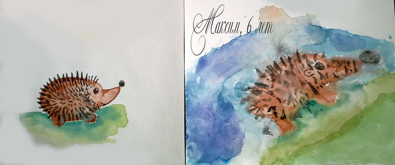 Этих ёжиков рисовали по уроку из ютуб,детский канал нашла. Сначала сама просмотрела,потом сидели с Максом рисовали,я показывала уже по памяти,он повторял,но давно за ним заметила,никогда точь в точь не повторяет,всегда привносит своё в рисунок.