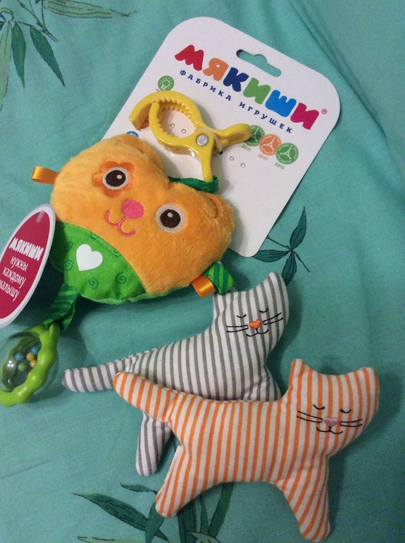Сегодня наконец-то погуляли по магазинам) на работе подарили сертификат в "дочки-сыночки", сначала ходили туда, выбор так себе, еле-еле набрала на 3000- купили бутылочку,соску,ножнички,расческу-щетку,погремушку,термометр и крем пурелан. Потом поехали гулять в Икею, старший сынок выбрал погремушки в виде котиков,сказал,что мимимишные и надо обязательно взять, он у нас фанат котиков. Зашли в mothercare- по одежде пока ничего не приглянулось, хочу купить слипы недорогие и симпатичные, но пока ничего не вижу. Купили очередного котика)))