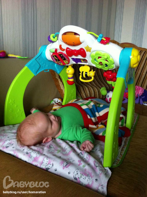 А теперь про малявочку моего драгоценного....у нас эпидемия как и во всей россии и поэтому на плановый прием мы не ходили, но я взвешивалась с ним на весах и без него кароче получилось что весим мы уже 7,5)))Рост не знаю но слипики на 63см нам малы)))и вообще у меня очучение что он у меня такой большенький)))колики нас отпустили тьфу тьфу тьфу...уже неделю не пьем ни че от коликов....начали купаться каждый день перед сном, ложимся поздно часов в 11, а когда у него вечерний сон затягиваеться то и в 12 ложимся бывает, зато опять таки тьфу тьфу тьфу спим аж до 6 или даже парой до 7 утра не просыпаясь....и это только после купания так)))Мне оч это нравиться, потом жадно очень сьедает оч наполненую сисю и ложиться дальше часов до 10))днем почти не спим, минут по 15 несколько раз, потом в спим вечером с 7 до 9 гдето ну и по кругу...меня его распорядок сейчас устраивает на все сто)))как коворила с кормлением вроде все наладилось)))только вот изредко покрываемся красными прыщами))мама когда че нидь не выдержет и захавает))Засыпает почти всегда сам, на руках оч редко, не даю ему приучаться к рукам....я выработала у него привычку когда он хочет спать и гнусит я его маленько травлю на ручки не беру, он лежит погнусит недолго только потом даю соску и это как кнопка вкл-выкл у нас...он сразу отрубаеться....чтоб не потерять этот чудо навык соску кроме как перед сном не даю))))уж оч мне нравиться как она на него действует))))Мы уже осознанно смотрим по сторонам, узнаем лица, улыбаемся, хохочем в голос, особенно если ему пальцем по губам делаешь так блблблблблблбл...он прям ржет привизгивая)))из всех одежек на 0-3 месяцев мы выросли))носим уже от 3-6 месяцев размер))Сегодня первый раз ходили гулять на пол часа, нам папа наконец то каляску привез, до этогосидели иногда на балконе, но вообще то если честно я просто всяких чехоточных боюсь что накашляют на меня или на него(((