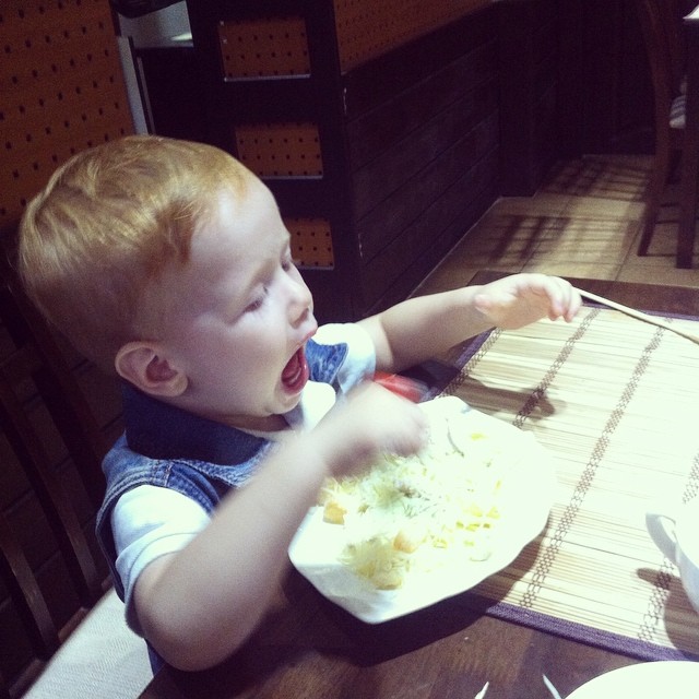 В кафе очень радует реакция окружающих, когда садим сына, вручаем ему все как положено салатик и что нидь на горячее и он сидит спокойненько и размерено поглащает все это, периодически запивая чаем))) #мояпрелесть #лёваобжора