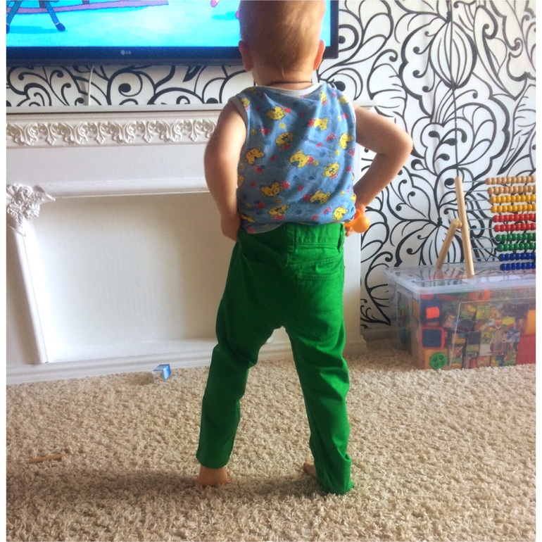 Совсем совсем без помощи) правда они 98 размера, огромные ему, из залежей моих достал, приволок, из пакета достал, бирку оторвал и натянул))) ох вот ведь какой большой сыночек мой уже)))
