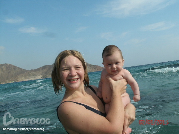 Лилу спит в люльке Жетем, кушает мамино молочко, и обожает купаться и нырять, даже если это Красное море в декабре.