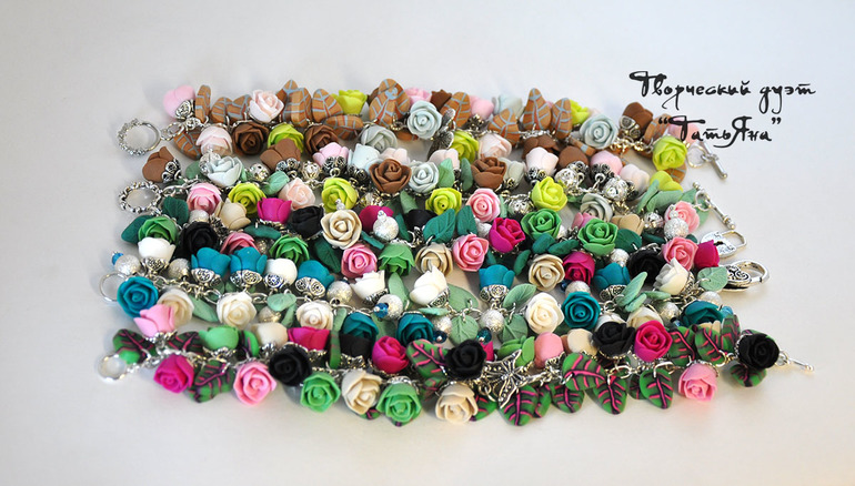 Новиночки. Это пять браслетиков))) Буйство цвета и роз.