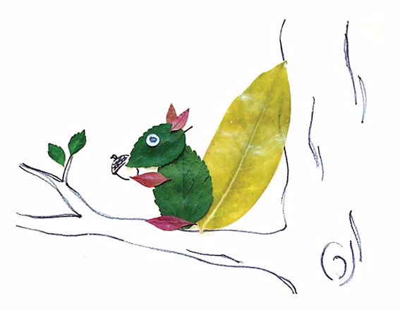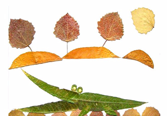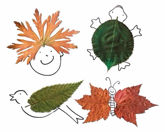 6. Делаем осенние букеты, используя штампы и листья. Штамп для вазочки вырезаем из губки для мытья посуды.
