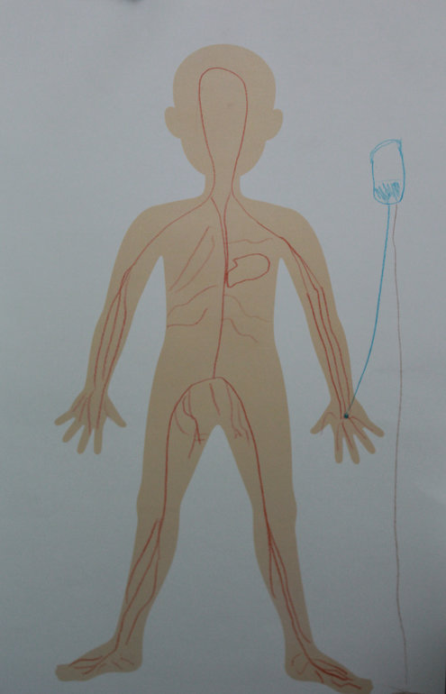 Закрепили новые знания на практическом задании. Нарисовали кровеносную систему и капельницу.