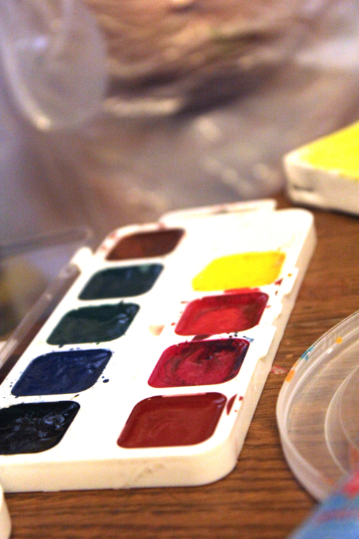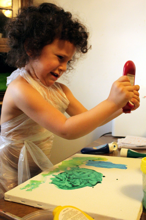 Семейное творчество. Мама сделала - желтый фон, пап добавил синих мазков, за что получил от мамы. Все остальное нарисовала Даша)))