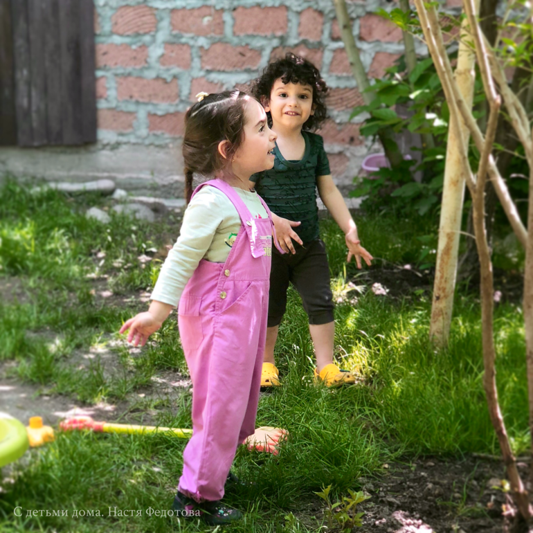 Играли во дворе с Эммой, зашли перекусить.