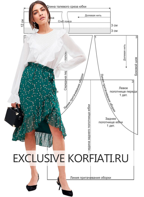 Если вы поклонница юбок, то будете в восторге от нашей новой идеи! Взгляните на эту стильную и эффектную юбку насыщенного бутылочного цвета с россыпью ярких белых горошин - невероятно женственная и романтичная модель, которую вы сможете сшить самостоятельно всего за один день. И даже выкройка вам не потребуется, ведь сшить такую юбку можно выкройки. Фасон юбки - с запАхом, пояс - на резинке, по низу юбки и линии запАха притачана широкая оборка, модель выполнена из шифона и посажена на подкладку.