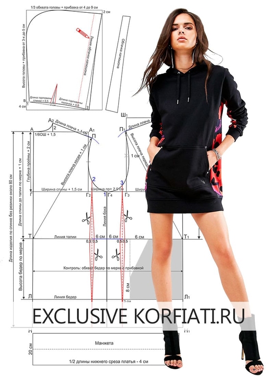 Спортивная леди! Шьем платье с капюшоном по выкройке