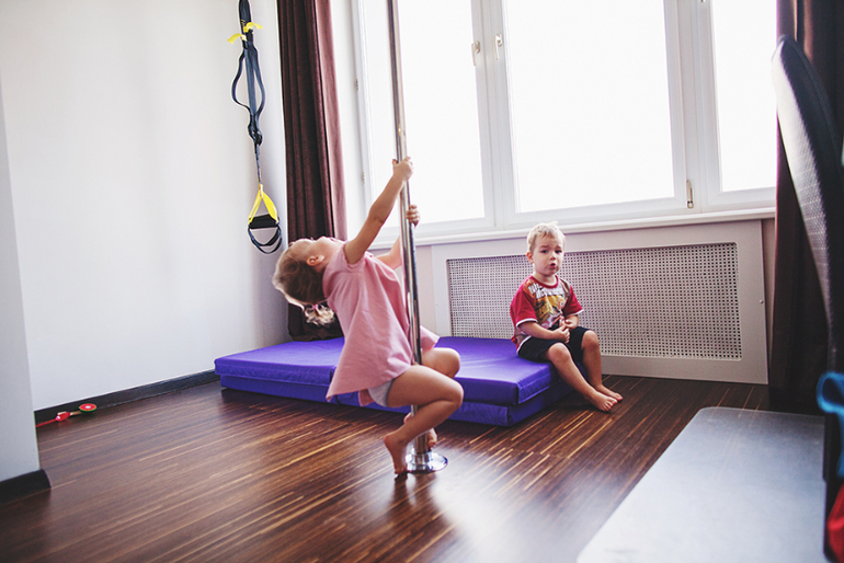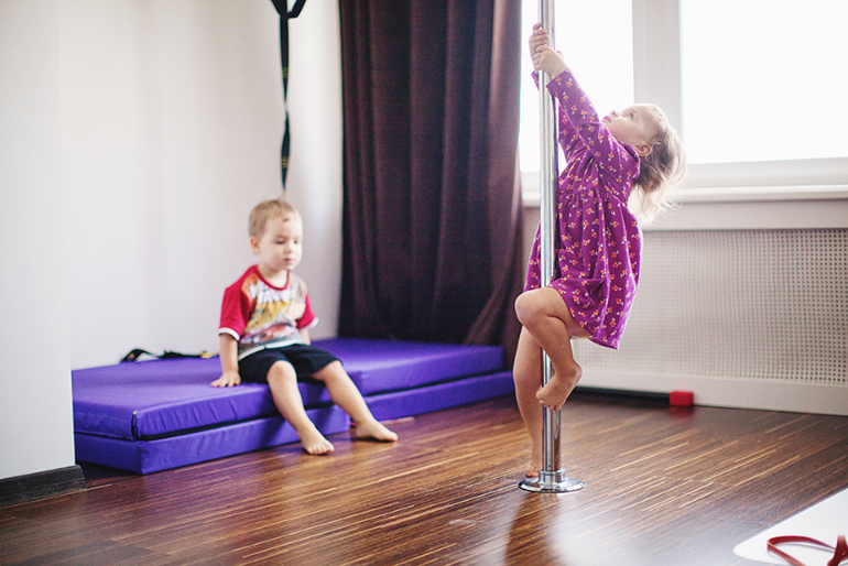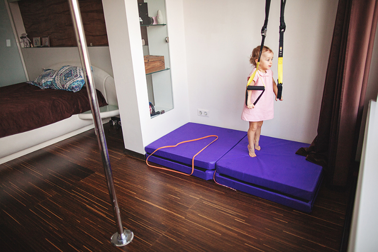 Спорт привлекает в любом проявлении) а еще Маша считает, что девочка всегда должна ходить в платье! и желательно в розовом, ну на крайний случай в фиолетовом)) и ни на что другое не соглашается даже дома!