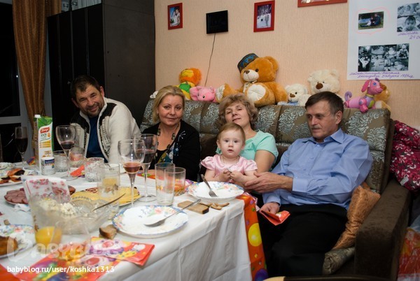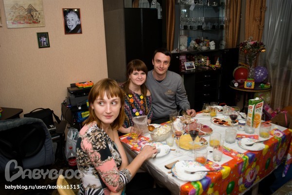 В это время прибыли бабушки-дедушки-крестные. К этому времени наш папа доготовил заброшеные мной салаты и горячее. И все уселись за стол))) я рассказала про первый год Дашин
