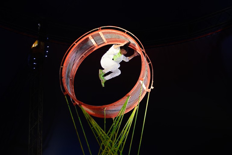 а в шаре ездили на мотоциклах и не падали! Этот номер остался на видео, произвел на них с папой сильное впечатление. На фото только шар