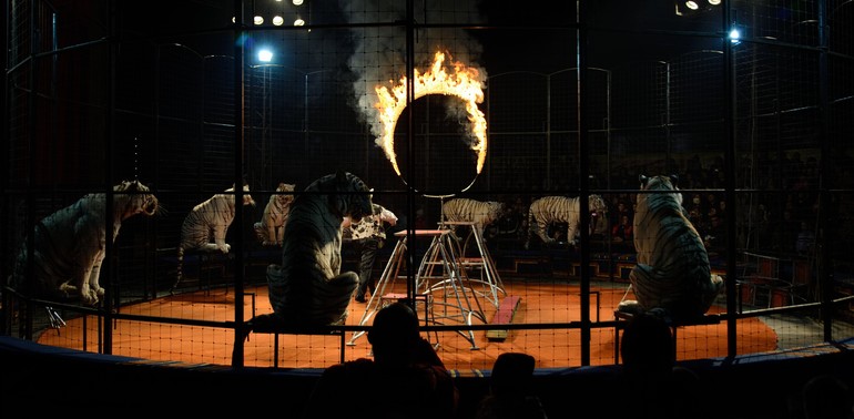 а конце было очень много белых тигров и они прыгали через горящее кольцо, Даша была удивлена, что они решились и никто не загорелся