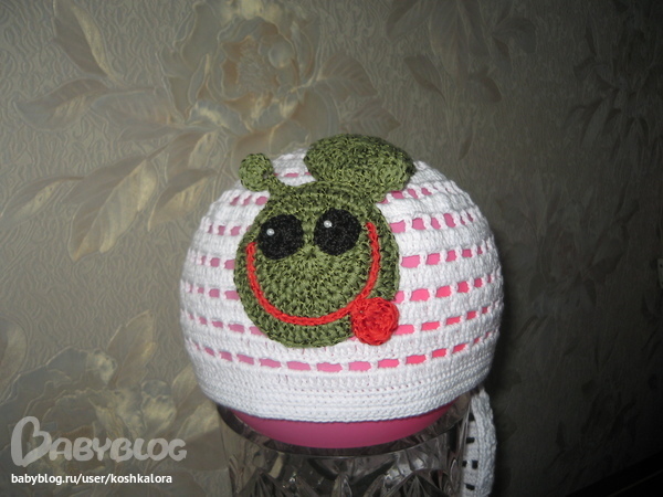 Хвастаюсь шапочкой,цветок не слишком большой?Внучка в Риге ,пока без примерки.