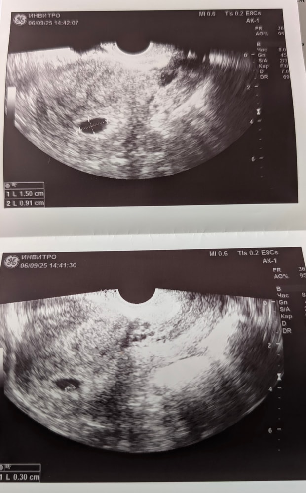 Сходили с мужем на первое УЗИ. По М срок(на 6.09.) - 6 недель 3 дня. Малышок растет. Даже середечко уже билось🥹🥰 Врача выбрала на сайте продокторов, просто по фото. Женщина мне понравилась- Камболова Оксана. Отзывов о ней было не так много, но хорошие. И правда, я не ошиблась, очень приятный человек. На все вопросы отвечала спокойно и вежливо.