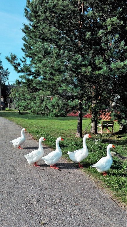 Гуси шипели на них, Илюшка говорил, давай бежим...укусят, а Аня... видимо страха еще нет, не понимала... Как это, такая красивая ГУСЯ может укусить?! Гуси тоже не понимали, как...это, такая малявка не убегает?!