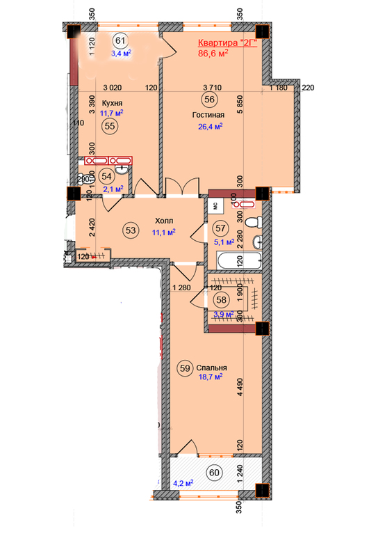 Добрый день. Посоветуйте как лучше сделать планировку? Общая квадратура 59 кв.м.