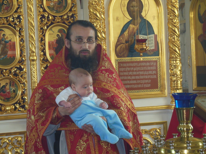 вчера мы крестили Егора. поехали в маленькую церковь к знакомому батюшке. с самого начала с приключениями! только выехали из двора - у мужа колесо пробило. хорошо, что народу было много и ехали на трех машинах - потеснились, перегруппировались. дальше поехали на двух. мужа оставили менять колесо. потом дорогу перепутали - свернули не на ту деревню. в общем до церкви ехали долго, но доехали!