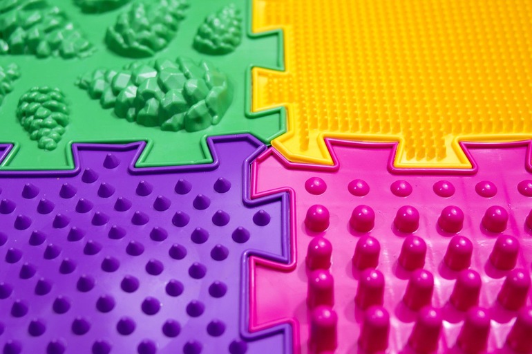 Разные поверхности , яркие , легко моются,собираются в пазл !!