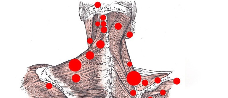 Текущие же точки - это так называемые триггерные точки (ТТ), проявляющиеся в спазмированных мышцах. Они обычно очень болезненны при продавливании.