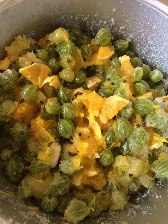 Апельсинки прямо с цедрой? Крыжовник, есть, на варенье меня пробило в этом году, ищу вкусные рецепты)))