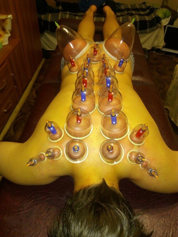 Банки , снимают напряжение в мышцах,выстанавливают кровообращения, восстанавливают копелярную сеть . Каждой банке -своё место.