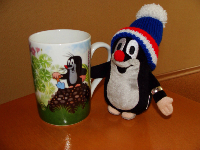 Есть и книжки про Кротика и игрушка и множество предметов с изображением этого маленького весёлого персонажа , с нами он путешествует по экскурсиям и на отдых с нами выезжает . На Серёжкин футбол всегда с нами !! Вот такой он у нас наш кротик , а у Кого есть свой любимый " герой" ? !)