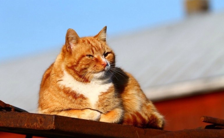 Рыжий кот замирает, блаженно щурясь, нюхает воздух.