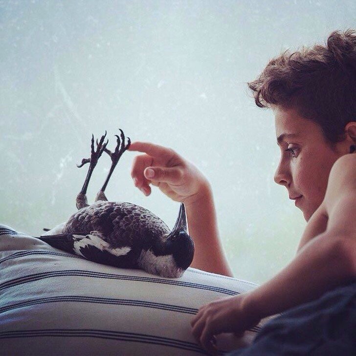 Уроки добраСемья Блум обнаружила сороку в 2013 году, когда ей было всего несколько недель. Желая спасти птицу от неминуемой смерти, они забрали её домой и назвали Пингвин, с тех самых пор она стала частью их семьи.