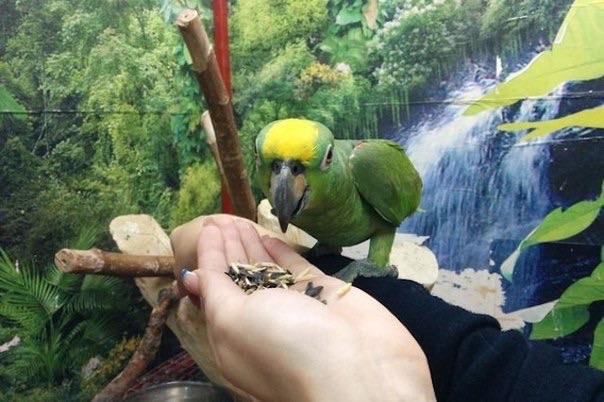11. Однажды решил укусить меня за череп, когда сидел на плече, но на него кинулся Карелла и мощно меня защитил, после этого случая попыток к укушению моей персоны замечено не было.
