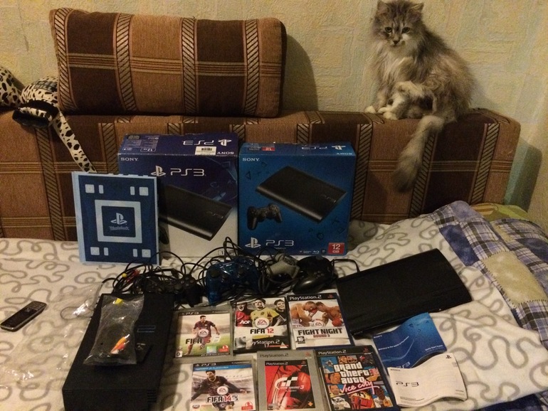 1.Плестейшен-2( диски, провода, карты памяти, 2 джойстика)
