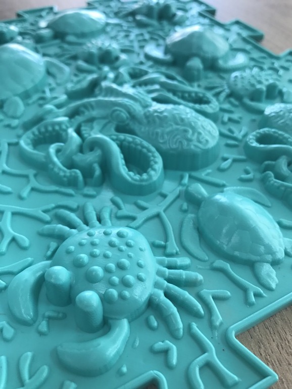 Уникальный МИКС "МОРЕ" идеально сочетает в себе жителей морских глубин, мягкие бурлящие волны, фауну морского дна и необычные формы морского рифа. МИКС состоит из поверхностей мягкой и средней жёсткости, что гарантирует не только качественную тренировку мышц стопы и голени, но и развитие мелкой моторики и мышления. Рассматривая морских жителей дети учатся играя .