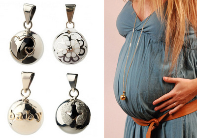 Мексиканские бола - звенящие обереги для беременных, колокольчики, призывающие ангелов. Слух развивается с 16 по 20 неделю беременности, на 16 неделе малыш начинает слышать звуки, а на 26 недели начинает на них реагировать. Звук колокольчика очень мелодичен и его позвякивания совершенно не раздражают. После родов бубенчик можно достать и вшить в погремушку ручной работы или повесить на мобиль. Конечно, надо помнить о безопасности, бубенчик как правило небольшой до 2 см в диаметре.ссылка