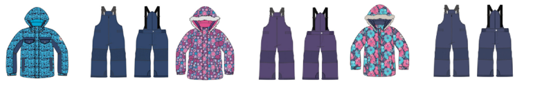 В каждой модели по одной костюму каждого размера, кроме 5, 6 и 6х (их по 2шт)