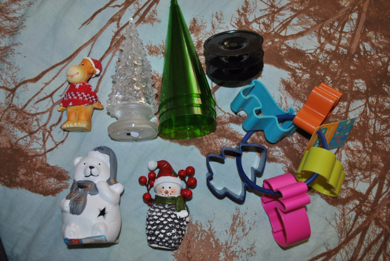 Разный декор из ФиксПрайса - тоже для творчества и поделок. Там елочки, снежинки и пр. новогоднее.