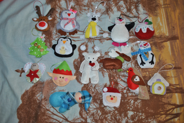 Игрушки из фетра НЕ для дурацкой елки-адвента из фетра. Сшила моя мама по нашему спец.заказу)) Мы сначала будем с ними играть, а затем вешать на обычную елку. Я сфоткала не все игрушки, некоторых по несколько экземпляров.