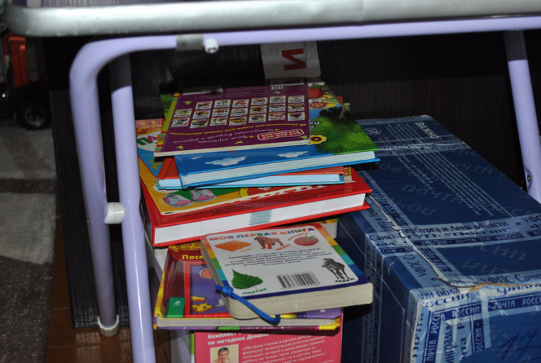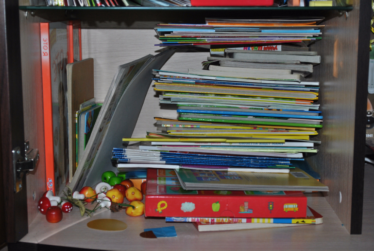 Это полка с развивающими пособиями, без худож. литературы (хотя она тоже затесалась..).