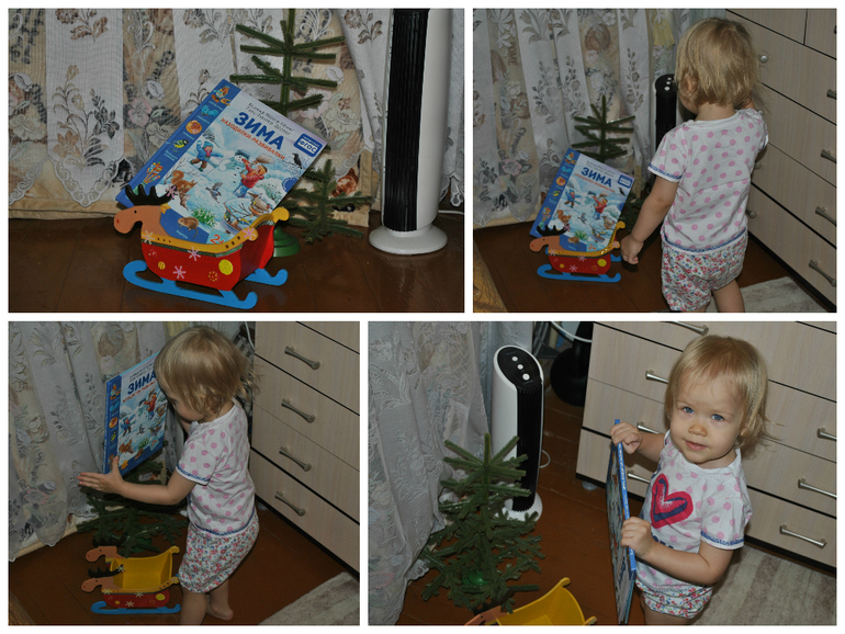 Утром этого дня, после завтрака, я обратила Машино внимание на сани около елочки..