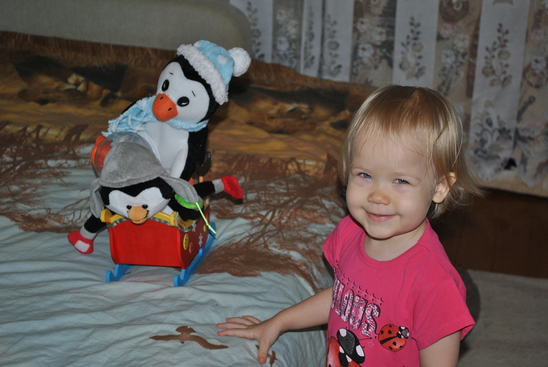 3 день адвента опять начался с любимых пингвинов! На этот раз Машуля усадила их на сани. Очень забавно))
