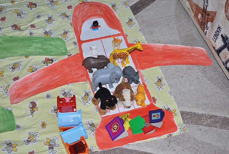 Сначала был процесс подготовки, нужно было сделать два самолета: красный и зеленый. Основную часть конечно раскрашивала я, но Марианна тоже помогала.