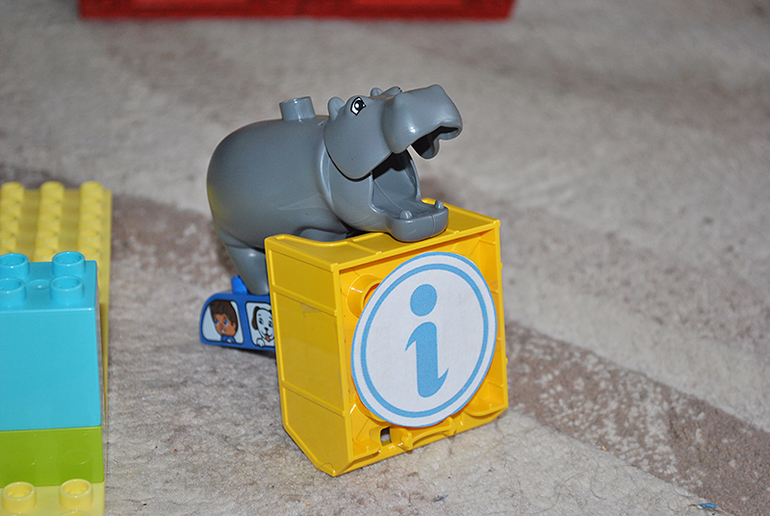 Когда вы минуете рамку, вы можете обратиться за справкой в нашу информационную службу. Здесь работает госпожа бегемотиха. Она устроена по программе помощи животным с ограниченными возможностями.