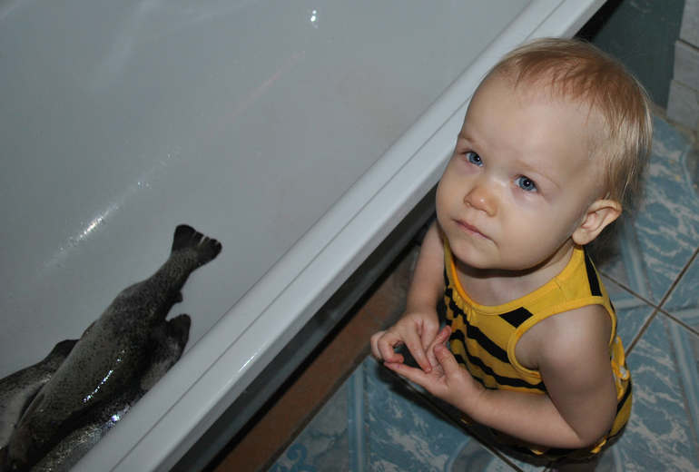 Машулю мы пока с собой не берем, потому что холодно рыбачить, поэтому дочка гостит у моей бабушки.