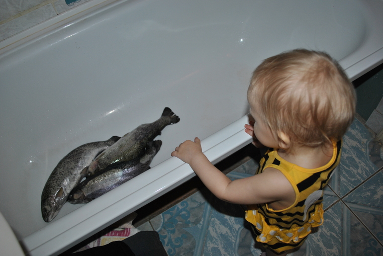 Никогда бы не подумала, что я буду ездить на рыбалку.., и что мне понравится ловить. Ездим мы на платник на Шарташе. Ловим форель