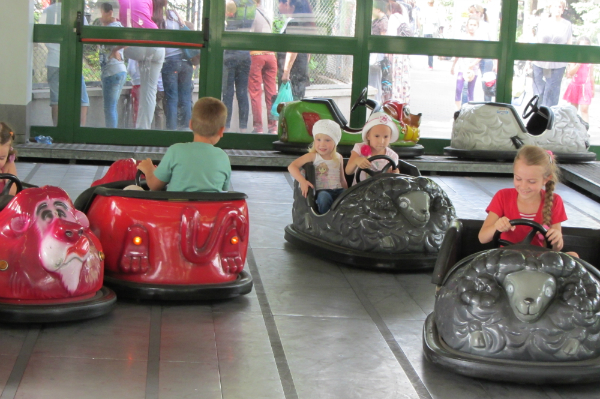 А это уже в завершении нашей прогулки прокотились на машинках..Зоопарк из двух частей.,вторую мы прошли самую малость к сожалению -она нам понравилась больше это уже новая зона зоопарка и здесь более просторно и зверюшкам и поситителям.